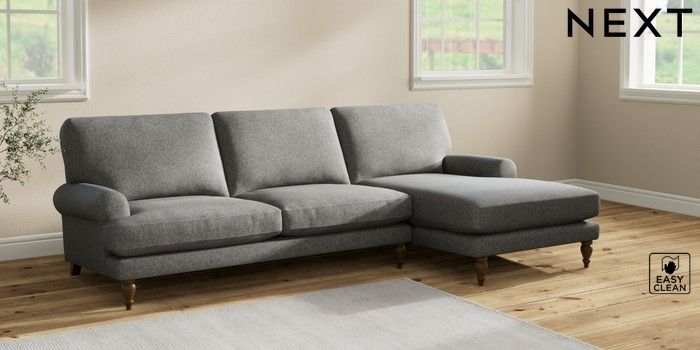 7.2.10 Erin Deep Relaxed Sit Medium Sofa Chaise - Right Hand Tweedy Blend Easy Clean Dark Grey High Classic Turned - Mid | Made Click here to use our website with more accessibility support, for example screen readers