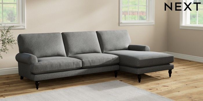 7.2.10 Erin Deep Relaxed Sit Medium Sofa Chaise - Right Hand Tweedy Chenille Dark Grey High Classic Turned - Dark | Made Click here to use our website with more accessibility support, for example screen readers