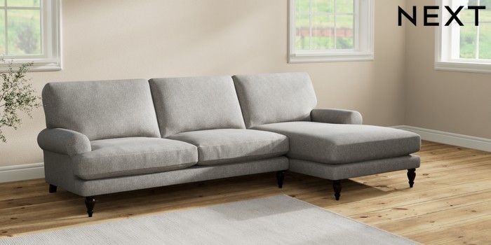 7.2.10 Erin Deep Relaxed Sit Medium Sofa Chaise - Right Hand Tweedy Chenille Mid Grey High Classic Turned - Dark | Made Click here to use our website with more accessibility support, for example screen readers