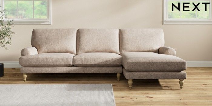 7.2.10 Erin Deep Relaxed Sit Medium Sofa Chaise - Right Hand Tweedy Chenille Mid Natural High Classic Turned - Light | Made Click here to use our website with more accessibility support, for example screen readers