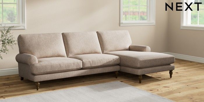 7.2.10 Erin Deep Relaxed Sit Medium Sofa Chaise - Right Hand Tweedy Chenille Mid Natural High Classic Turned - Mid | Made Click here to use our website with more accessibility support, for example screen readers