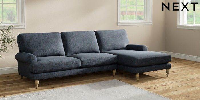 7.2.10 Erin Deep Relaxed Sit Medium Sofa Chaise - Right Hand Tweedy Chenille Navy Blue High Classic Turned - Light | Made Click here to use our website with more accessibility support, for example screen readers