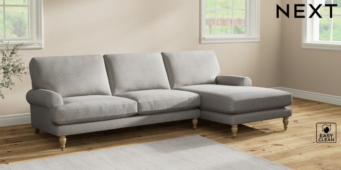 7.2.10 Erin Deep Relaxed Sit Medium Sofa Chaise - Right Hand Woven Chenille Easy Clean Light Grey High Classic Turned - Light | Made Click here to use our website with more accessibility support, for example screen readers