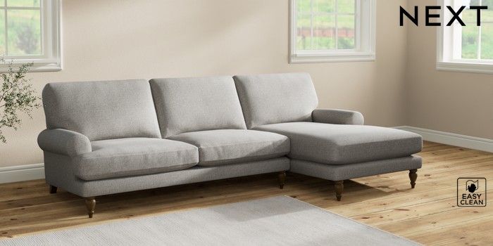 7.2.10 Erin Deep Relaxed Sit Medium Sofa Chaise - Right Hand Woven Chenille Easy Clean Light Grey High Classic Turned - Mid | Made Click here to use our website with more accessibility support, for example screen readers