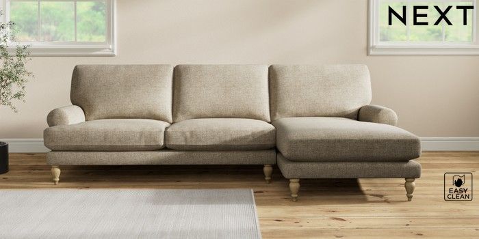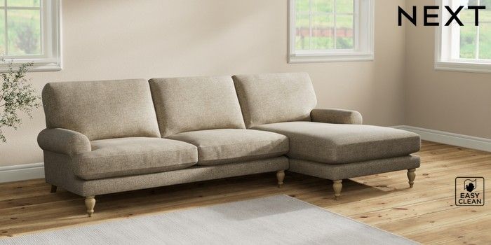 7.2.10 Erin Deep Relaxed Sit Medium Sofa Chaise - Right Hand Woven Chenille Easy Clean Mid Natural High Classic Turned - Light | Made Click here to use our website with more accessibility support, for example screen readers