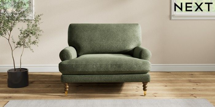 7.2.10 Erin Deep Relaxed Sit Snuggle Boucle Chenille Dark Moss Green High Classic Turned Brass Castor - Mid | Made Click here to use our website with more accessibility support, for example screen readers