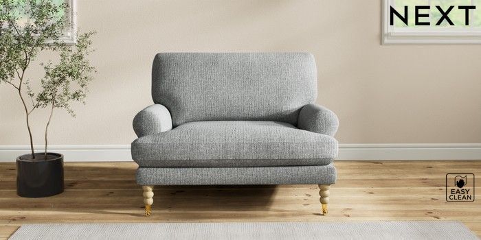 7.2.10 Erin Deep Relaxed Sit Snuggle Chunky Boucle Easy Clean Mid Grey High Classic Turned Brass Castor - Light | Made Click here to use our website with more accessibility support, for example screen readers