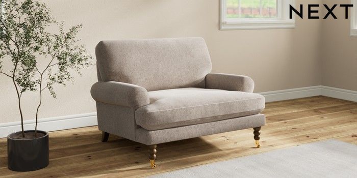 7.2.10 Erin Deep Relaxed Sit Snuggle Chunky Chenille Light Dove High Classic Turned Brass Castor - Mid | Made Click here to use our website with more accessibility support, for example screen readers