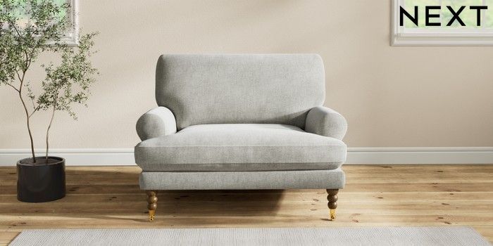 7.2.10 Erin Deep Relaxed Sit Snuggle Chunky Chenille Light Grey High Classic Turned Brass Castor - Mid | Made Click here to use our website with more accessibility support, for example screen readers