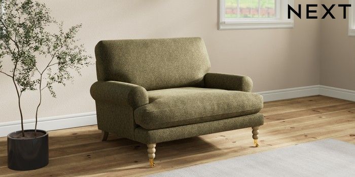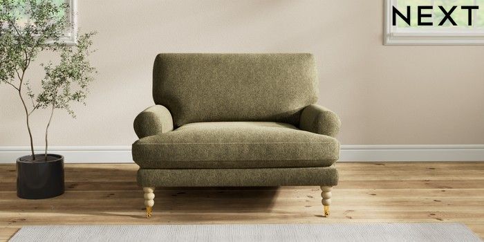 7.2.10 Erin Deep Relaxed Sit Snuggle Cotswold Chenille Dark Green High Classic Turned Brass Castor - Light | Made Click here to use our website with more accessibility support, for example screen readers