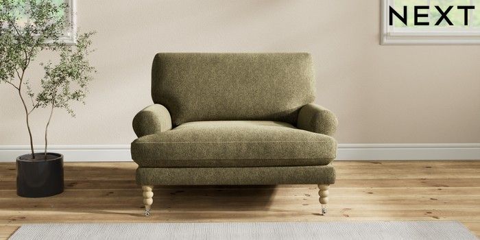 7.2.10 Erin Deep Relaxed Sit Snuggle Cotswold Chenille Dark Green High Classic Turned Chrome Castor - Light | Made Click here to use our website with more accessibility support, for example screen readers