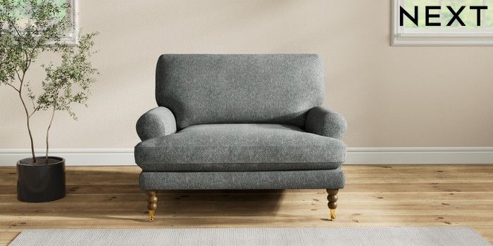 7.2.10 Erin Deep Relaxed Sit Snuggle Cotswold Chenille Dark Grey High Classic Turned Brass Castor - Mid | Made Click here to use our website with more accessibility support, for example screen readers