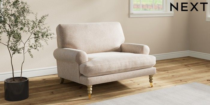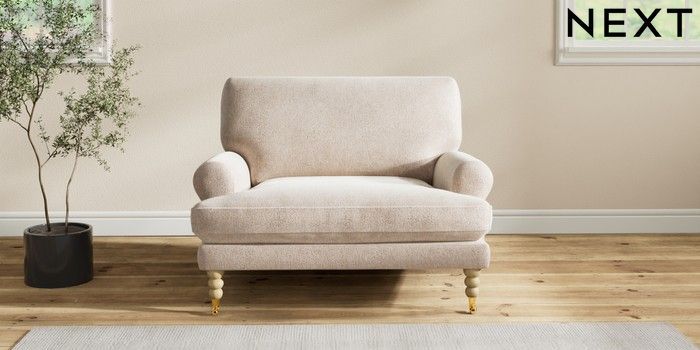 7.2.10 Erin Deep Relaxed Sit Snuggle Cotswold Chenille Light Natural High Classic Turned Brass Castor - Light | Made Click here to use our website with more accessibility support, for example screen readers