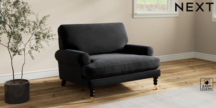 7.2.10 Erin Deep Relaxed Sit Snuggle Fine Chenille Easy Clean Black High Classic Turned Brass Castor - Dark | Made Click here to use our website with more accessibility support, for example screen readers