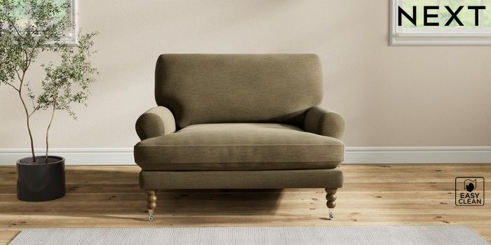 7.2.10 Erin Deep Relaxed Sit Snuggle Fine Chenille Easy Clean Dark Moss Green High Classic Turned Chrome Castor - Mid | Made Click here to use our website with more accessibility support, for example screen readers