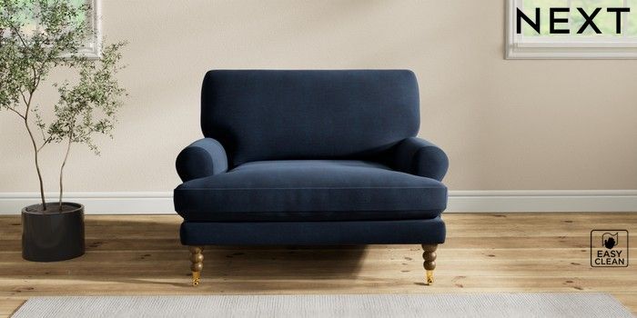 7.2.10 Erin Deep Relaxed Sit Snuggle Fine Chenille Easy Clean Dark Navy Blue High Classic Turned Brass Castor - Mid | Made Click here to use our website with more accessibility support, for example screen readers