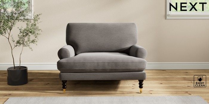 7.2.10 Erin Deep Relaxed Sit Snuggle Fine Chenille Easy Clean Dark Smoke Grey High Classic Turned Brass Castor - Dark | Made Click here to use our website with more accessibility support, for example screen readers