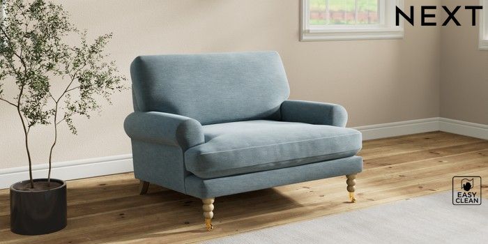 7.2.10 Erin Deep Relaxed Sit Snuggle Fine Chenille Easy Clean Mid Blue High Classic Turned Brass Castor - Light | Made Click here to use our website with more accessibility support, for example screen readers