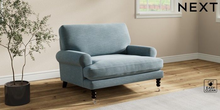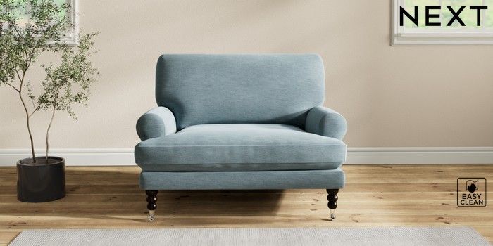 7.2.10 Erin Deep Relaxed Sit Snuggle Fine Chenille Easy Clean Mid Blue High Classic Turned Chrome Castor - Dark | Made Click here to use our website with more accessibility support, for example screen readers