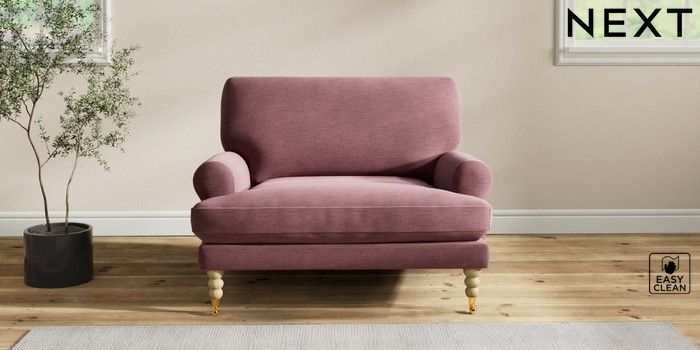 7.2.10 Erin Deep Relaxed Sit Snuggle Fine Chenille Easy Clean Mid Mulberry Purple High Classic Turned Brass Castor - Light | Made Click here to use our website with more accessibility support, for example screen readers