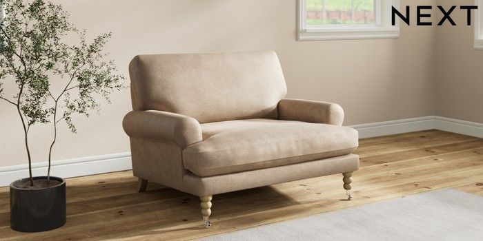 7.2.10 Erin Deep Relaxed Sit Snuggle Luxe Chenille Mid Camel Beige High Classic Turned Chrome Castor - Light | Made Click here to use our website with more accessibility support, for example screen readers