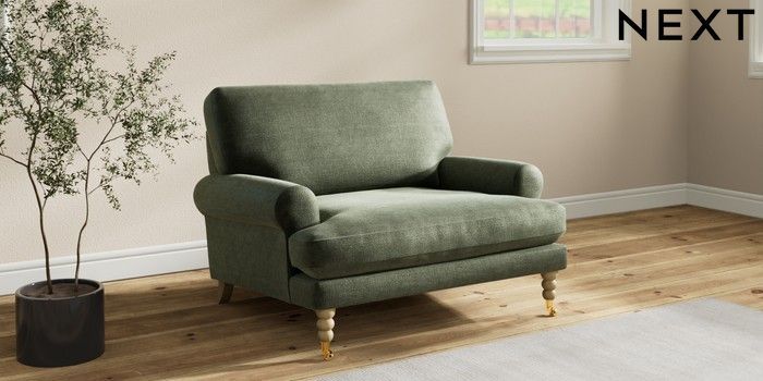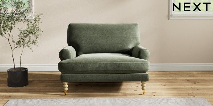 7.2.10 Erin Deep Relaxed Sit Snuggle Luxe Chenille Mid Green High Classic Turned Brass Castor - Light | Made Click here to use our website with more accessibility support, for example screen readers