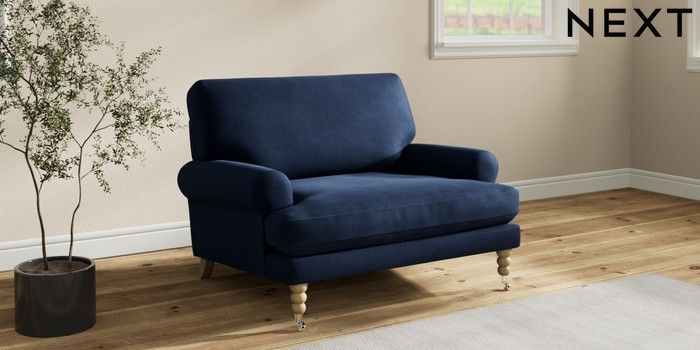 7.2.10 Erin Deep Relaxed Sit Snuggle Luxe Chenille Navy Blue High Classic Turned Chrome Castor - Light | Made Click here to use our website with more accessibility support, for example screen readers