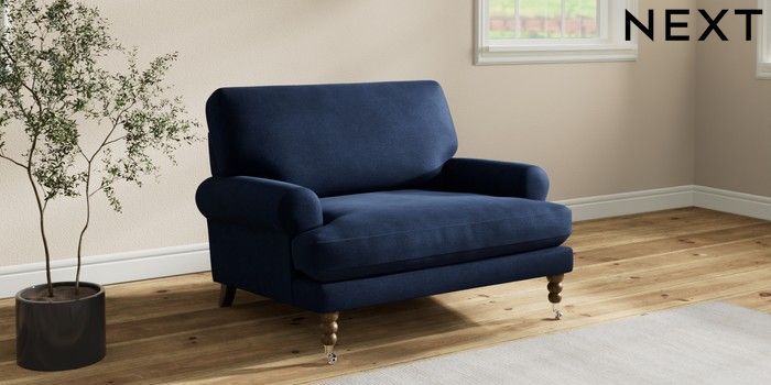 7.2.10 Erin Deep Relaxed Sit Snuggle Luxe Chenille Navy Blue High Classic Turned Chrome Castor - Mid | Made Click here to use our website with more accessibility support, for example screen readers