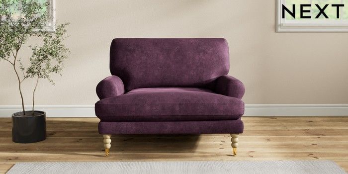 7.2.10 Erin Deep Relaxed Sit Snuggle Plush Chenille Dark Plum Purple High Classic Turned Brass Castor - Light | Made Click here to use our website with more accessibility support, for example screen readers