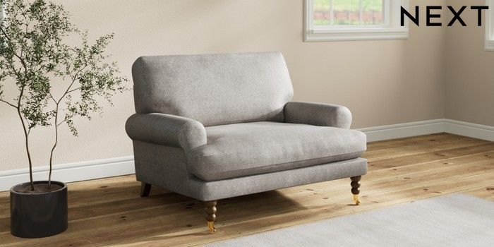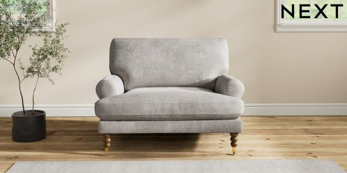 7.2.10 Erin Deep Relaxed Sit Snuggle Plush Chenille Light Grey High Classic Turned Brass Castor - Mid | Made Click here to use our website with more accessibility support, for example screen readers