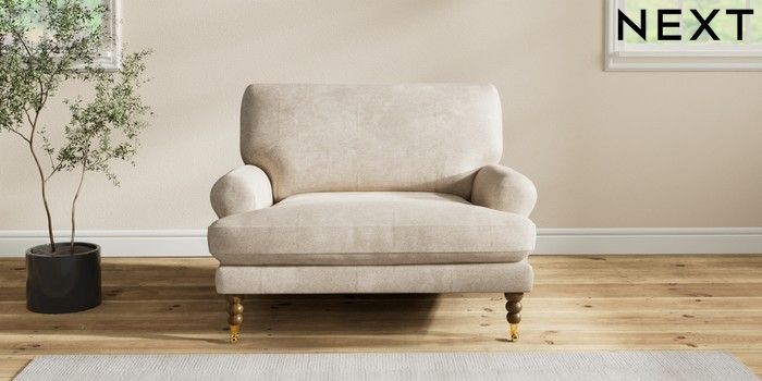 7.2.10 Erin Deep Relaxed Sit Snuggle Plush Chenille Light Natural High Classic Turned Brass Castor - Mid | Made Click here to use our website with more accessibility support, for example screen readers