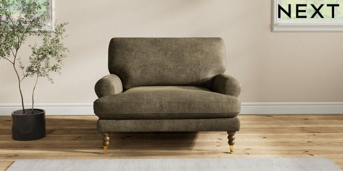 7.2.10 Erin Deep Relaxed Sit Snuggle Plush Chenille Moss Green High Classic Turned Brass Castor - Mid | Made Click here to use our website with more accessibility support, for example screen readers