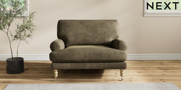 7.2.10 Erin Deep Relaxed Sit Snuggle Plush Chenille Moss Green High Classic Turned Chrome Castor - Light | Made Click here to use our website with more accessibility support, for example screen readers
