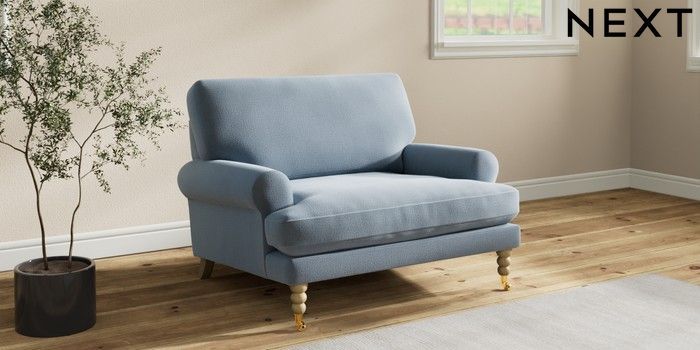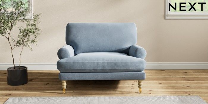 7.2.10 Erin Deep Relaxed Sit Snuggle Relaxed Linen Look Mid Blue High Classic Turned Brass Castor - Light | Made Click here to use our website with more accessibility support, for example screen readers