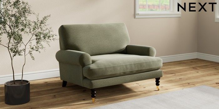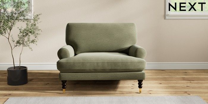 7.2.10 Erin Deep Relaxed Sit Snuggle Ripple Chenille Mid Moss Green High Classic Turned Brass Castor - Dark | Made Click here to use our website with more accessibility support, for example screen readers