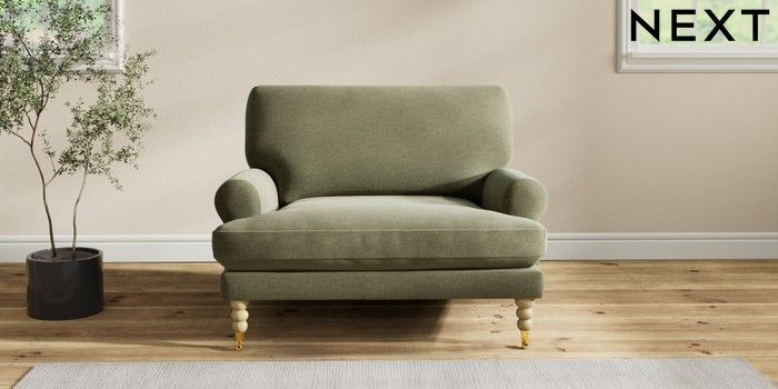 7.2.10 Erin Deep Relaxed Sit Snuggle Ripple Chenille Mid Moss Green High Classic Turned Brass Castor - Light | Made Click here to use our website with more accessibility support, for example screen readers