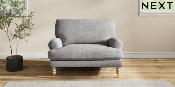 7.2.10 Erin Deep Relaxed Sit Snuggle Studio Chenille Mid Grey High Classic Turned Brass Castor - Light | Made Click here to use our website with more accessibility support, for example screen readers