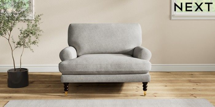 7.2.10 Erin Deep Relaxed Sit Snuggle Tweedy Chenille Mid Grey High Classic Turned Brass Castor - Dark | Made Click here to use our website with more accessibility support, for example screen readers