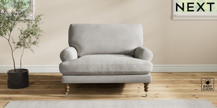 7.2.10 Erin Deep Relaxed Sit Snuggle Woven Chenille Easy Clean Light Grey High Classic Turned Chrome Castor - Mid | Made Click here to use our website with more accessibility support, for example screen readers
