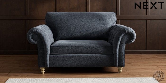 7.2.10 Gosford Highback II Deep Sit 2 Seater Small Sofa Boucle Chenille Dark Slate Blue Low Turned - Light | Made Click here to use our website with more accessibility support, for example screen readers