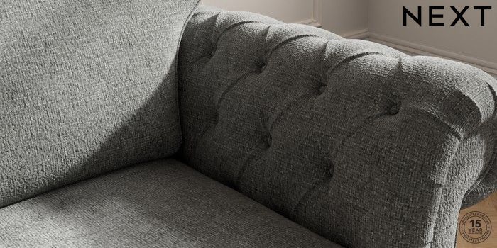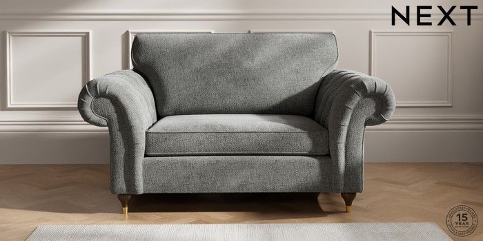 7.2.10 Gosford Highback II Deep Sit 2 Seater Small Sofa Chunky Chenille Dark Grey Modern Turned Metal Cap - Mid | Made Click here to use our website with more accessibility support, for example screen readers