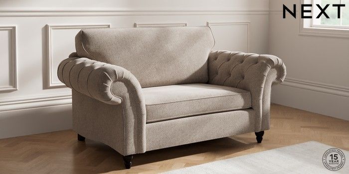 7.2.10 Gosford Highback II Deep Sit 2 Seater Small Sofa Chunky Chenille Light Dove Low Turned - Dark | Made Click here to use our website with more accessibility support, for example screen readers