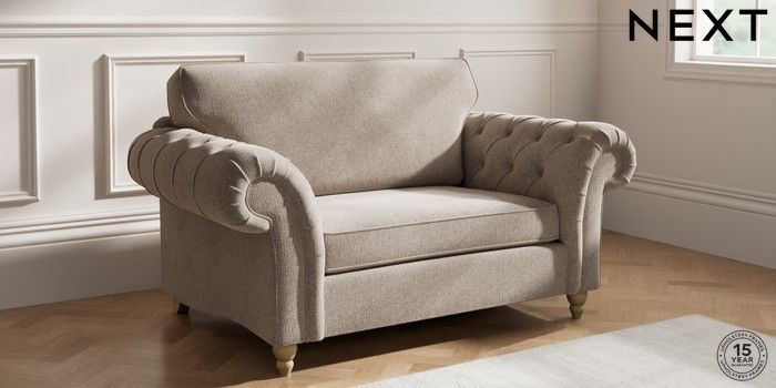 7.2.10 Gosford Highback II Deep Sit 2 Seater Small Sofa Chunky Chenille Light Dove Low Turned - Light | Made Click here to use our website with more accessibility support, for example screen readers