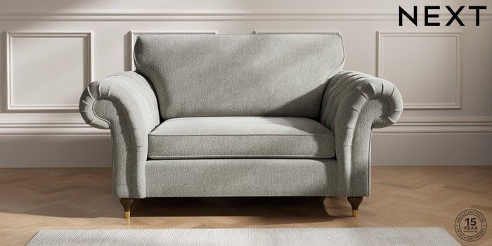 7.2.10 Gosford Highback II Deep Sit 2 Seater Small Sofa Chunky Chenille Light Grey Modern Turned Metal Cap - Mid | Made Click here to use our website with more accessibility support, for example screen readers
