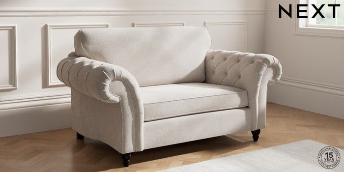 7.2.10 Gosford Highback II Deep Sit 2 Seater Small Sofa Chunky Chenille Oyster Low Turned - Dark | Made Click here to use our website with more accessibility support, for example screen readers