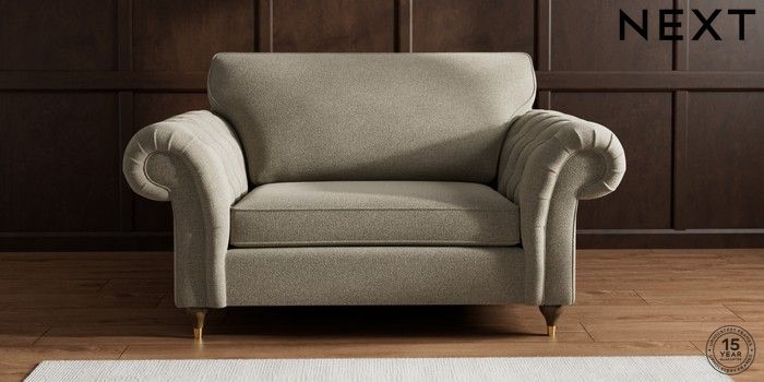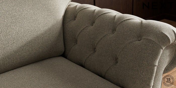7.2.10 Gosford Highback II Deep Sit 2 Seater Small Sofa Chunky Marl Light Olive Green Modern Turned Metal Cap - Mid | Made Click here to use our website with more accessibility support, for example screen readers