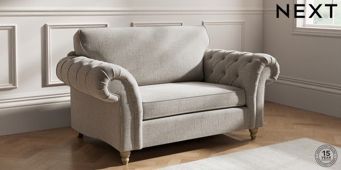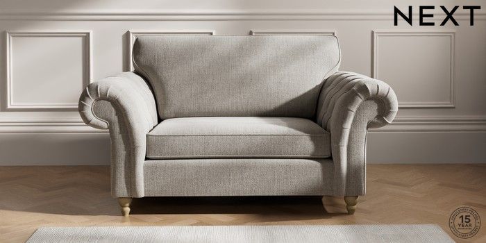 7.2.10 Gosford Highback II Deep Sit 2 Seater Small Sofa Chunky Weave Dove Grey Low Turned - Light | Made Click here to use our website with more accessibility support, for example screen readers