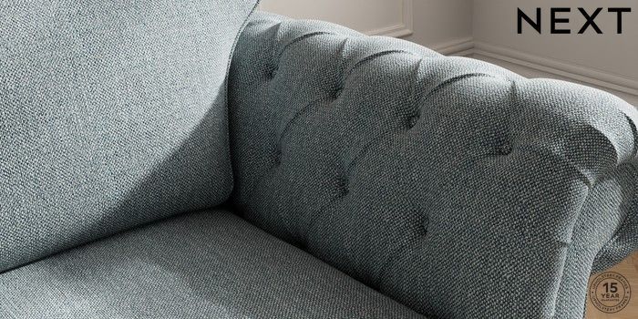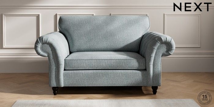 7.2.10 Gosford Highback II Deep Sit 2 Seater Small Sofa Chunky Weave Mid Blue Low Turned - Dark | Made Click here to use our website with more accessibility support, for example screen readers