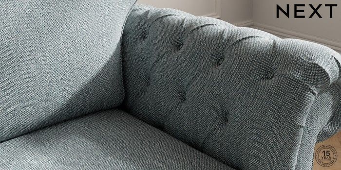 7.2.10 Gosford Highback II Deep Sit 2 Seater Small Sofa Chunky Weave Mid Blue Modern Turned Metal Cap - Mid | Made Click here to use our website with more accessibility support, for example screen readers