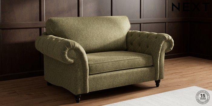 7.2.10 Gosford Highback II Deep Sit 2 Seater Small Sofa Cotswold Chenille Dark Green Low Turned - Dark | Made Click here to use our website with more accessibility support, for example screen readers
